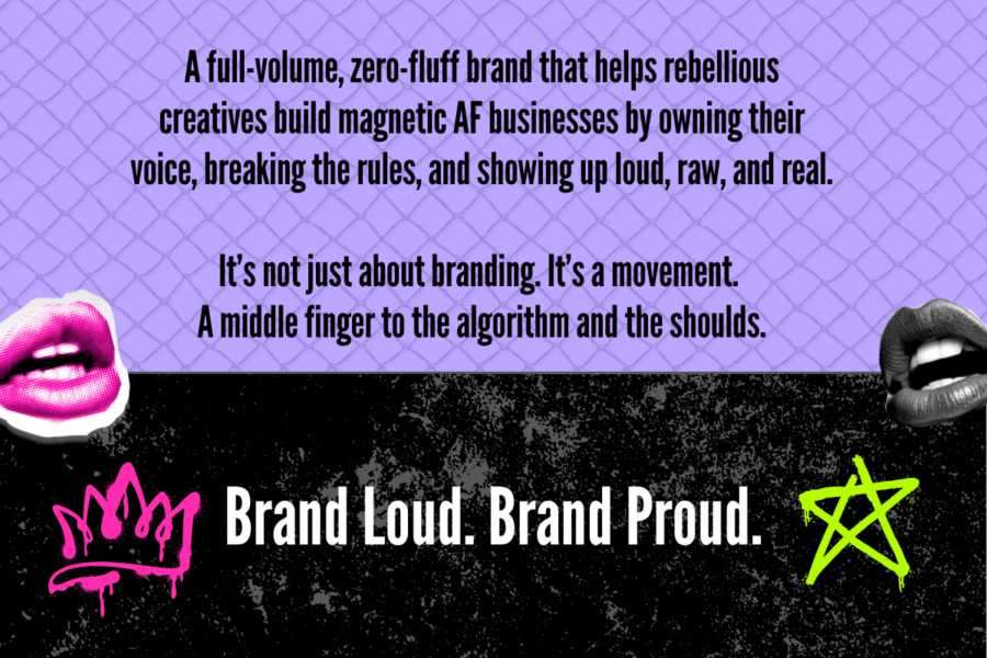 Creative entrepreneurs (mostly women & LGBTQ+), 25–38, who are building brands with big energy and aren’t interested in playing small or being “palatable.” They crave permission to be loud, raw, and magnetic.
